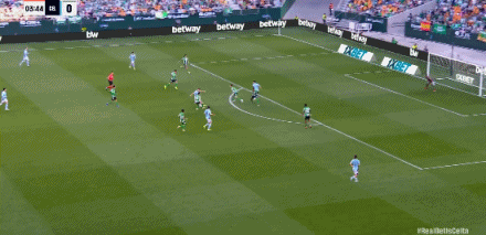 第4分钟,胡特格拉远射,巴列斯黄油手皮球进网,贝蒂斯0-1塞尔塔